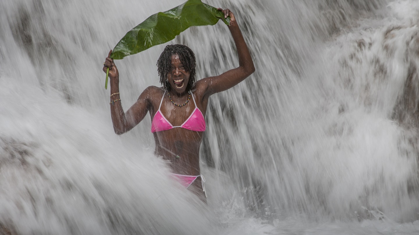 This is the sign to turn inland and cross the main road to follow a forested path up to the popular Dunn’s River Falls, which you can climb, passing through cascading water. This walk can get busy, so enjoying it on a day when there are fewer tourists is advisable.