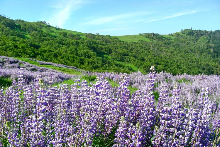 Pinnacles National Park features dramatic, towering rocks that are beautifully enhanced by wildflowers. In this California national park, you can enjoy wildflowers from March through May, with about 80% blooming during this period. Early blooms include bush lupine and black sage, while the hotter months bring orchids, buckwheat, and roses. Revel in these views along trails like Moses Spring Trail and Old Pinnacles Trail Loop.