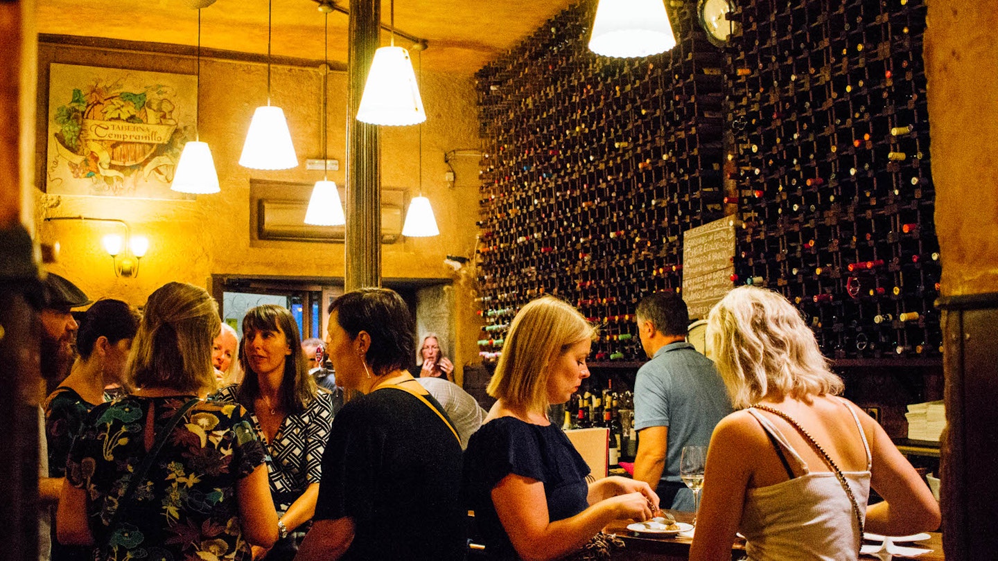 The first thing visitors notice upon entering Taberna El Tempranillo is the eye-popping display of wall-to-wall wine racks. Boasting over 100 Spanish wines, this proud bodega is popular with tourists and locals alike. If the wine list seems unending, never fear – a chalkboard has shortlisted the current trends. In addition to the tapas, there are many excellent pintxos (slices of bread artfully crowned with toppings such as wild mushrooms, foie gras, or tuna with roasted red peppers). While hardly off the beaten path, El Tempranillo still manages to feel intimate thanks to a mix of diffused lighting, solid service, and wistful charm.