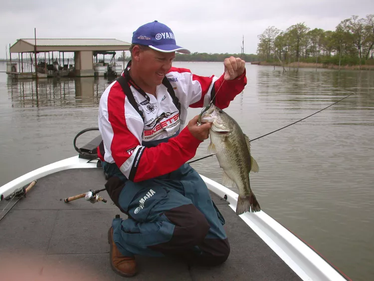 On occasions, bass may rise to hit the worm on the surface, making the strikes visible. At other times, the worm will simply disappear when a fish sucks it in. Bright colors are particularly advantageous in these situations, as they provide an indication of a fish strike in relatively clear waters. Frequently, when the worm sinks out of view, the only clue you may receive about a hit is when the line jumps or starts to move unexpectedly. If you feel the fish taking the worm, there’s a chance it may feel you too, resulting in a missed hookset.