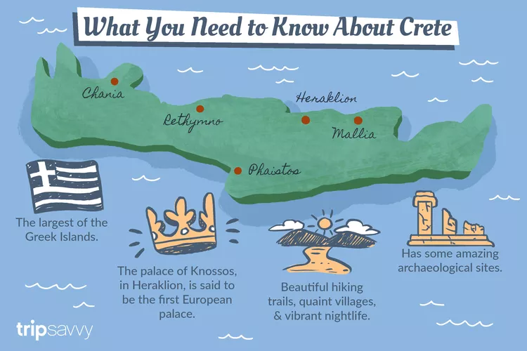 Crete is the largest of the Greek Islands, once the center of the Minoan civilization from around 2700 to 1420 BC. The island measures 160 miles (260 kilometers) from west to east and ranges up to 37 miles in width. Heraklion serves as the largest city with over 100,000 residents, followed by Chania which has around 50,000 inhabitants.