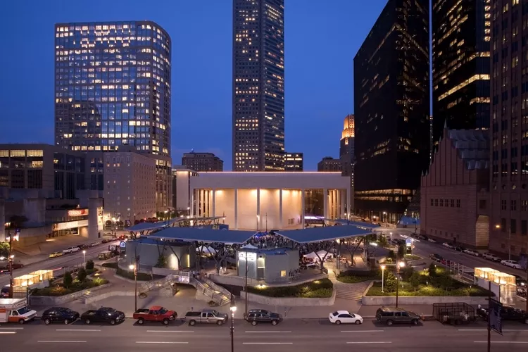 Houston’s Theater District occupies a small section of the north side of downtown, where all major performance centers are within an easy walking distance of one another.