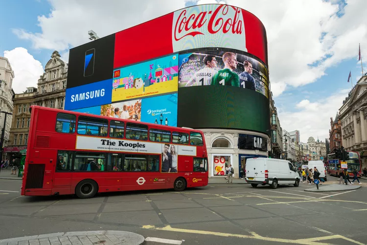 - The Curve: Piccadilly’s enormous advertising sign is its most distinctive feature. It effectively turns night into day and has been showcasing products and services with various illuminations since 1908. Coca-Cola has maintained an advertisement there continuously since 1954. Other long-term advertisers have included Sanyo, Samsung, McDonald’s, Hyundai, and L’Oreal. In 2017, the sign was relaunched as The Curve, a massive single electronic, ultra-high definition screen capable of displaying either multiple advertisements or one large advertisement.