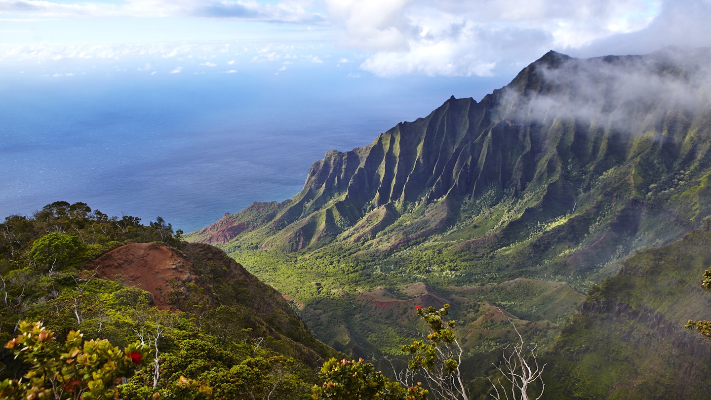 Soon, Waimea Canyon Drive merges with Kokeʻe Road, leading you to Kokeʻe State Park. Make stops at Kalalau Lookout and Puʻu o Kila Lookout for breathtaking views. Conditions permitting, you can hike the gorgeous Awaʻawapuhi Trail to get your adrenaline pumping!