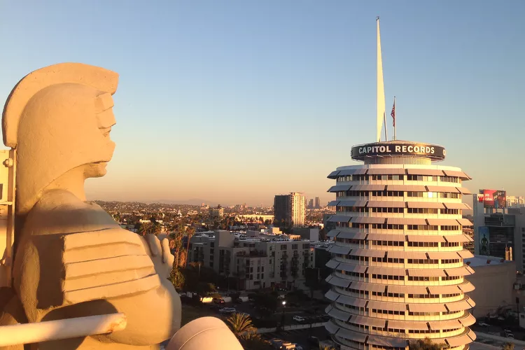 At the intersection of Hollywood and Vine, look for metered street parking to snap a picture of the Capitol Records building. Afterward, head south on Vine Street and make a right onto Sunset Boulevard. As you navigate, you’ll find Amoeba Music, a renowned shop for hard-to-find music, including an extensive vinyl and tape collection.