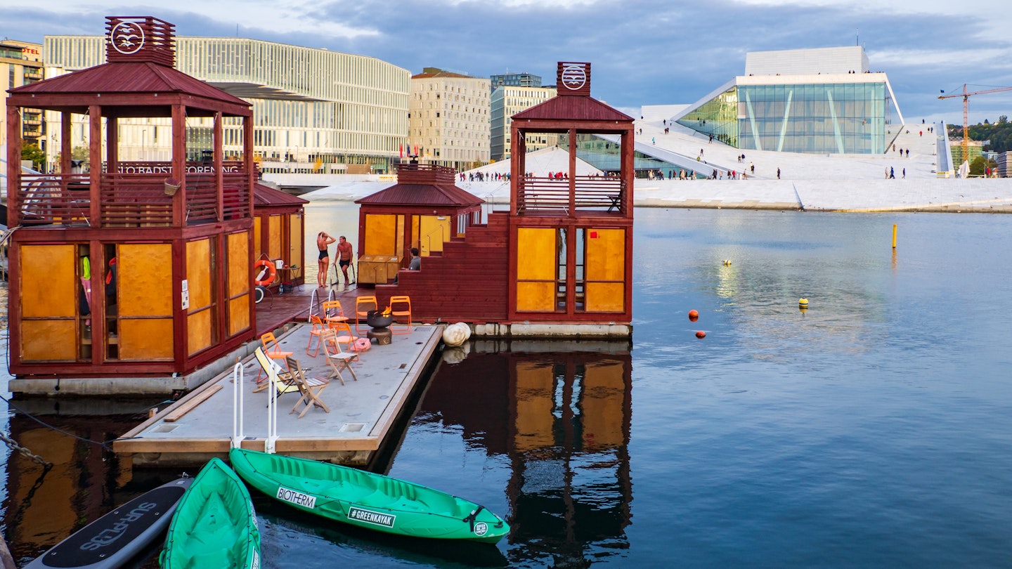 Visiting one of Oslo’s floating saunas, complete with a dip in the Oslofjord, is exhilarating, regardless of the season. You can find these saunas at popular spots like Aker Brygge, and the secluded ones operated at Sukkerbiten near the Munch Museum offer a unique escape.