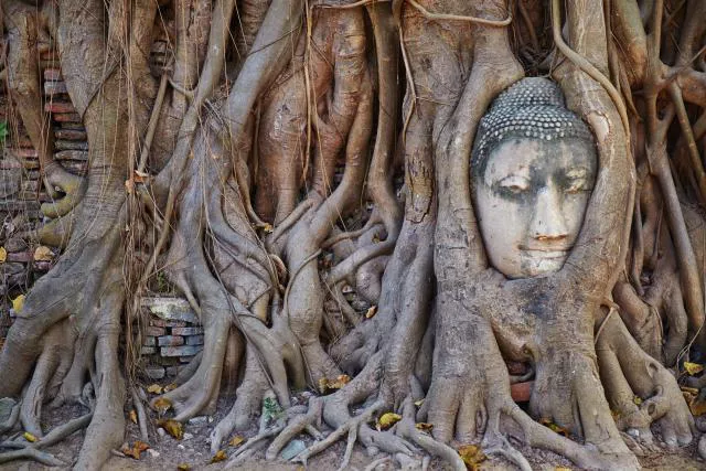Today, visitors flock to this UNESCO World Heritage Site to explore its ruins, which coexist with a modern city. One of the premier attractions is the sandstone head of an ancient Buddha statue, uniquely preserved by a tree that grew around it, leaving the head intact.