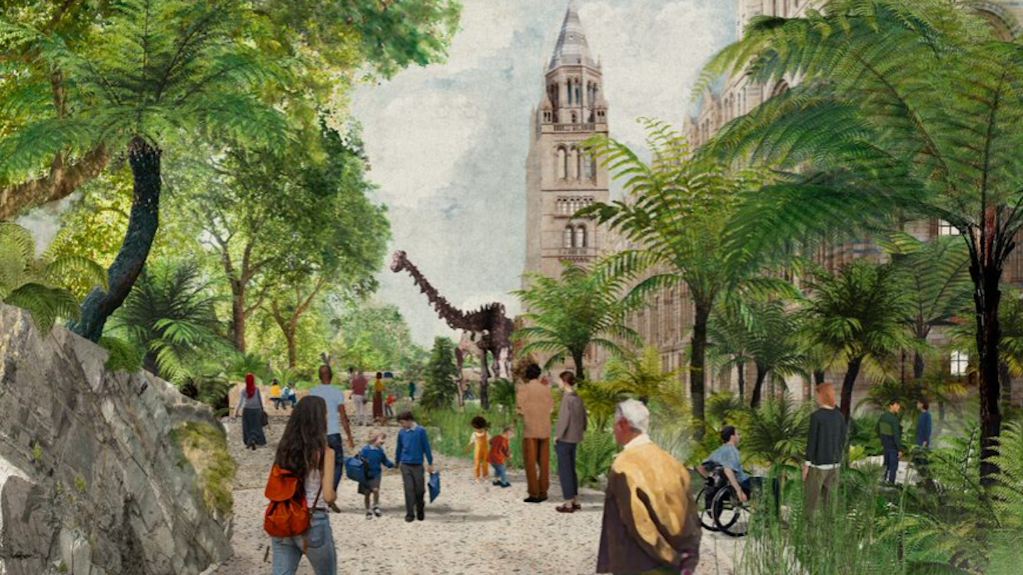 A brand-new cast of Dippy, the museum’s iconic diplodocus, will oversee the east gardens. Plants and fossils will narrate the planet’s geological history. Additionally, plans include an outdoor learning center and a “living lab,” where scientists, volunteers, and the public can collaborate on sustainability projects throughout the year.