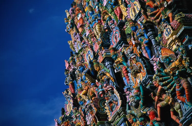 One of the temple’s central attractions is its remarkable Hall of 1,000 Pillars. Although the hall actually houses 985 pillars, each pillar showcases intricately carved statues representing yaali (a mythical lion and elephant hybrid) or various deities. Constructed in 1569 by Ariyanatha Mudaliyar, a general under Madurai’s Nayak dynasty, the hall captivates visitors with its vibrantly painted ceiling, which depicts a striking wheel of time. Not to be missed are the musical pillars and the art museum; entry tickets are priced at 50 rupees for foreigners and 5 rupees for Indian visitors.