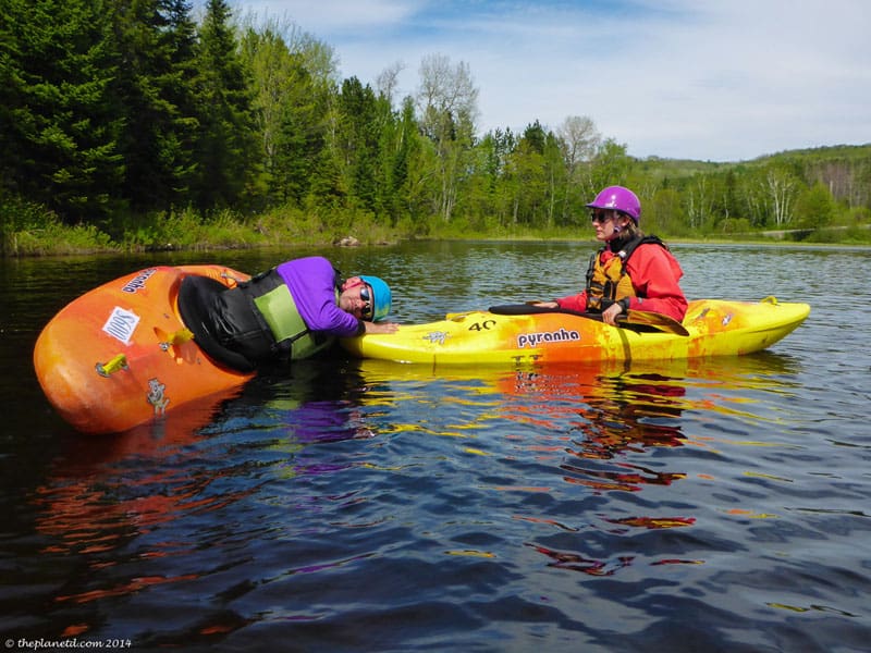 The Madawaska Kanu Centre introduces the wet exit technique in a tranquil manner. Our initial flip didn’t even require us to secure our spray skirts. All we needed to do was flip our boats and swim out. Eager to confront my fears, I volunteered first.