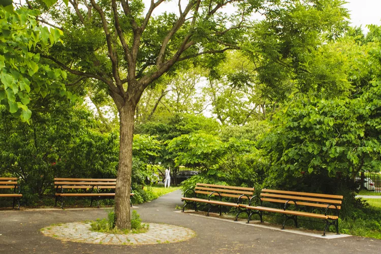 Although McGolrick Park is smaller than McCarren and not located by the water, it offers a tranquil atmosphere perfect for relaxation. The park is adorned with beautiful oak trees and features benches lining the park’s perimeter, as well as a playground for children, making it a great family-friendly location.