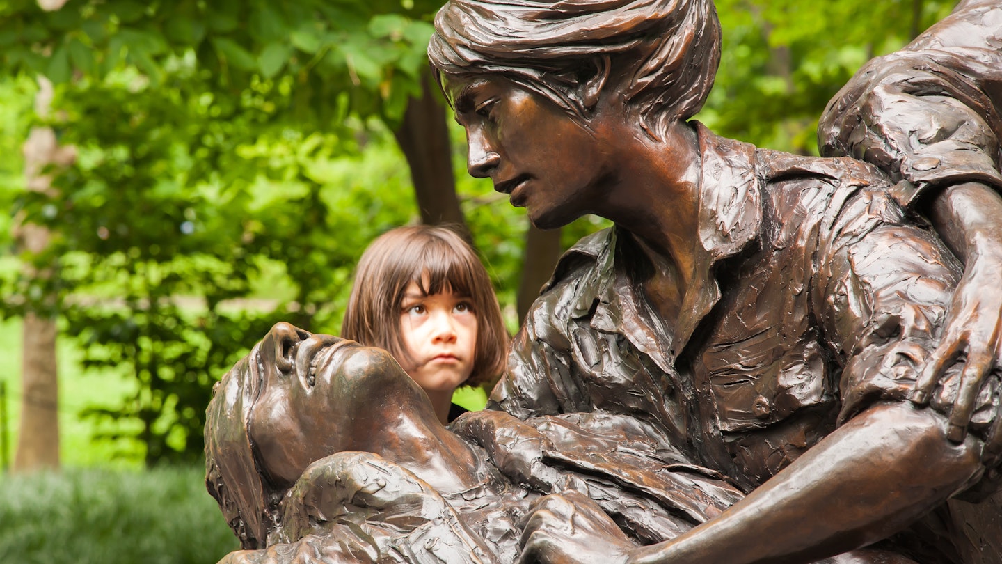 The neoclassical ceremonial wall at the entrance to Arlington National Cemetery isn’t just a wall; it’s a memorial honoring servicewomen from all wars and occupations. This site features a modern education center, theater, and computerized register of military women. Its exhibits cover the roles of military women from the Revolutionary War – where some women acted as spies and others fought disguised as men – to the present day. A notable feature is the views from the roof: behind you are the Arlington Cemetery’s gravestones; in front, the Memorial Bridge and the Washington Monument. Inspiring quotes are etched on an arc of glass tablets. While visiting Arlington National Cemetery, pay tribute to the nurses and women of the US who served in the Vietnam War at the Vietnam Women’s Memorial.